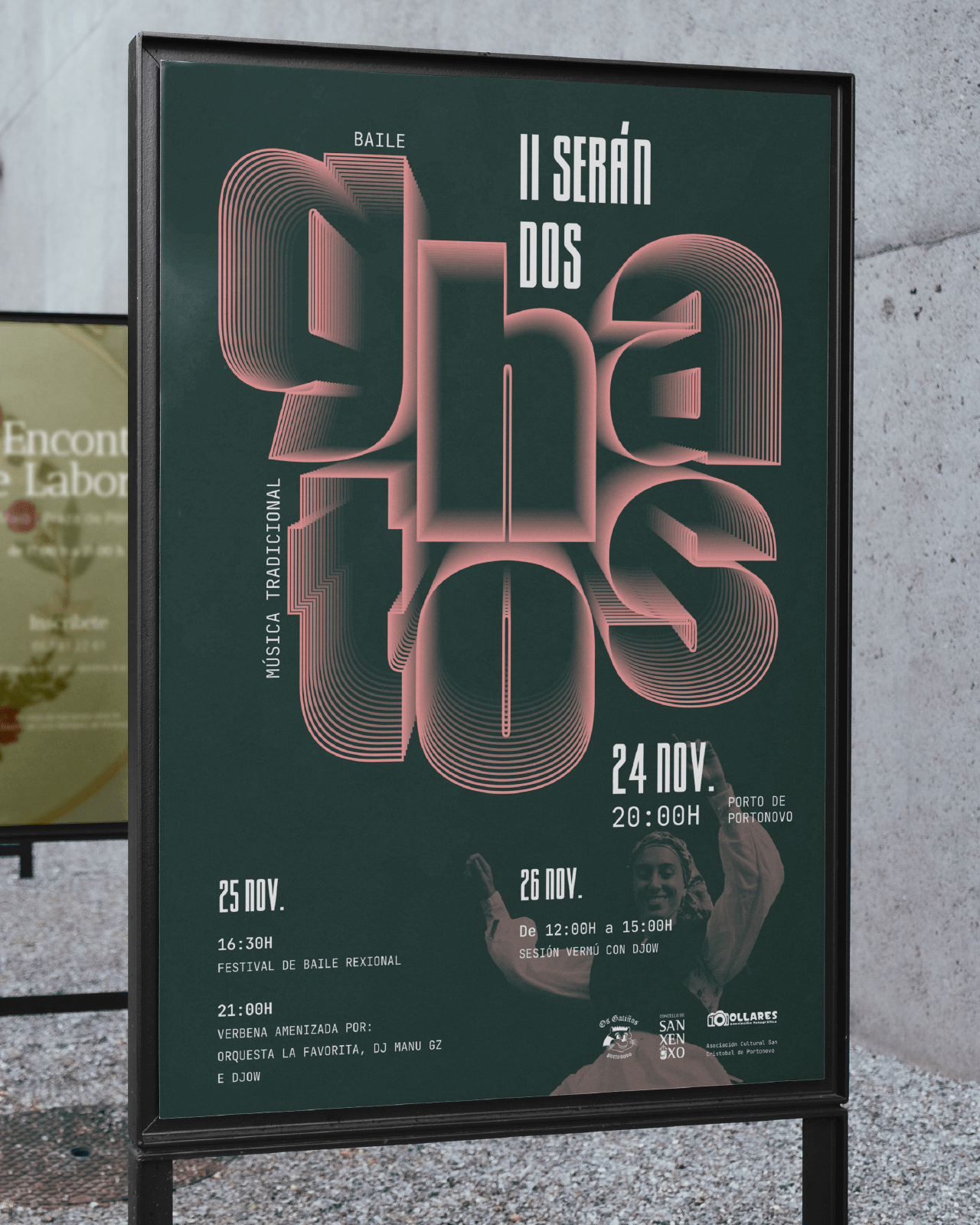 II Serán dos Ghatos é un evento de música tradicional galega organizado pola agrupación folclórica Os Gatiños de Portonovo. Desde Ailae Estudio encargámonos do deseño da cartelería e da creación de contido para redes sociais, co obxectivo de dar visibilidade ao evento e conectar coa comunidade local. A identidade visual mantén unha estética que mestura tradición e frescura, respectando a esencia do serán popular galego e adaptándoa a formatos dixitais e impresos.
