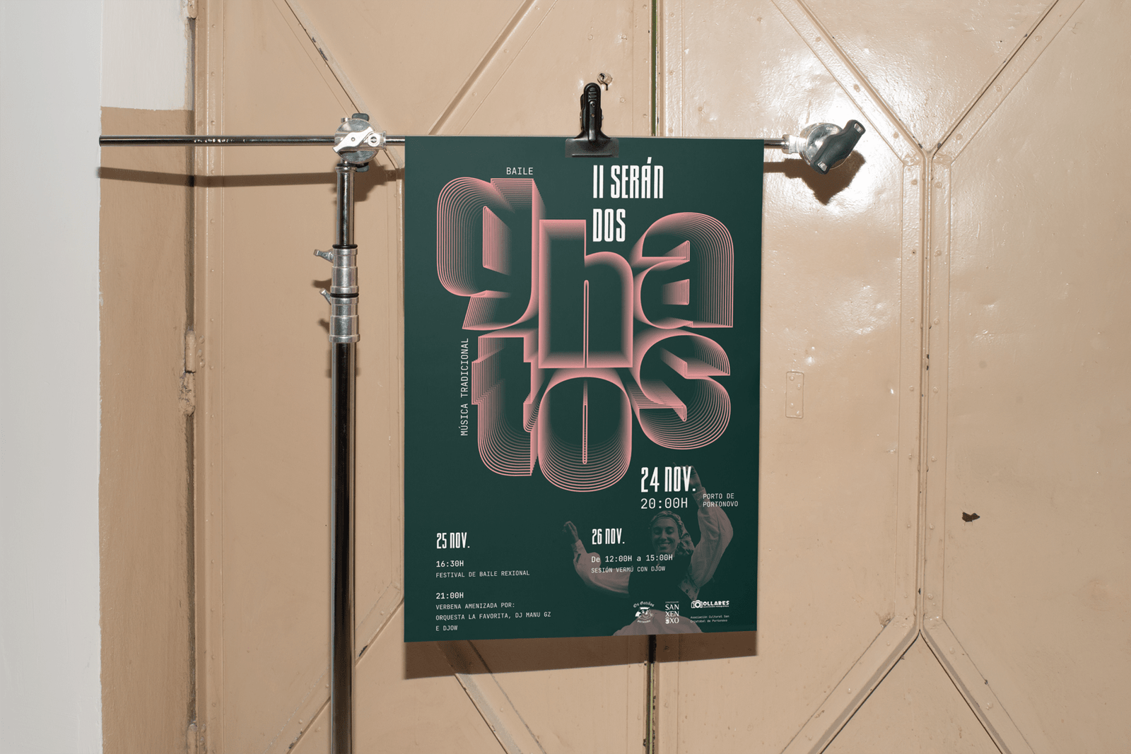 II Serán dos Ghatos é un evento de música tradicional galega organizado pola agrupación folclórica Os Gatiños de Portonovo. Desde Ailae Estudio encargámonos do deseño da cartelería e da creación de contido para redes sociais, co obxectivo de dar visibilidade ao evento e conectar coa comunidade local. A identidade visual mantén unha estética que mestura tradición e frescura, respectando a esencia do serán popular galego e adaptándoa a formatos dixitais e impresos.